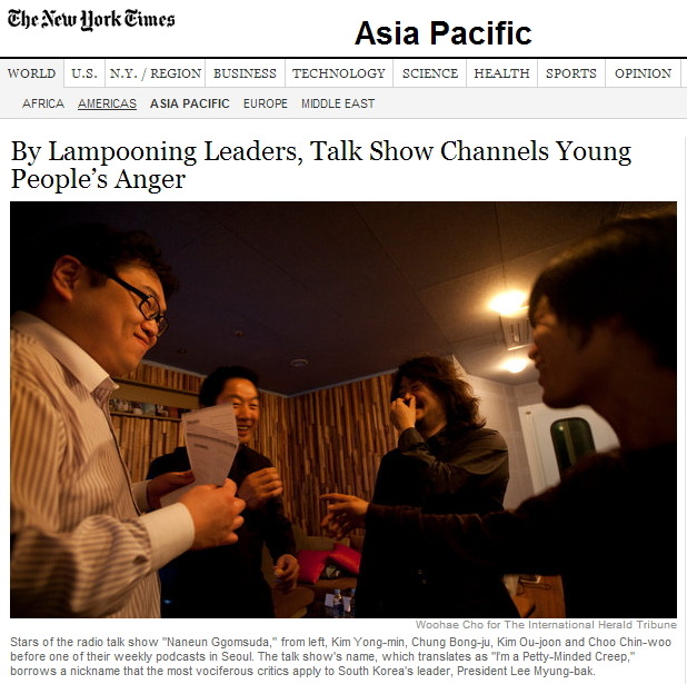 뉴욕타임스 국제판에 실린 나꼼수 기사 (원문 링크)