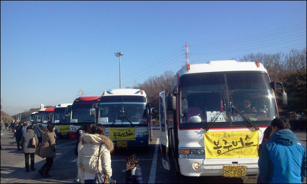 봉도사를 격려하기 위해 홍성으로 가는 봉주버스
