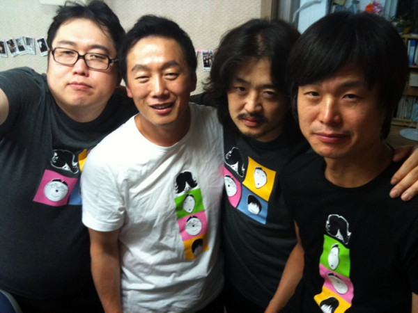나는꼼수다 첫 공식 티셔츠를 입은 멤버들