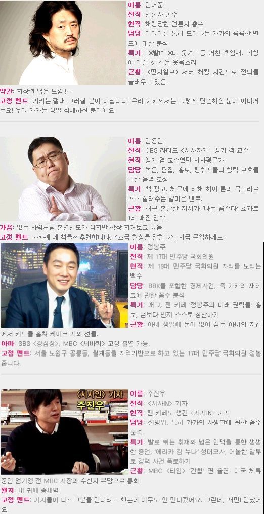 시사인 고재열 기자가 만든 나꼼수 멤버 인기 투표