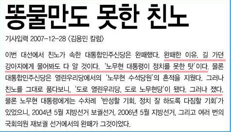 친노 때문에 힘들었던 게 아니라 너같은 반노들 때문에 힘들었던 거야.