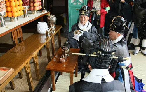 28일 오전 충남 아산 현충사에서 제464회 충무공 탄신 기념다례가 거행되고 있다.