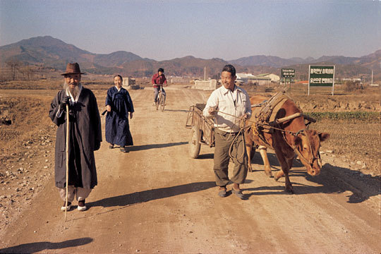 1970년대말 미국 평화봉사단 단원이 한 시골마을의 신작로를 찍은 사진. 유신을 홍보하는 입간판이 흥미롭다.