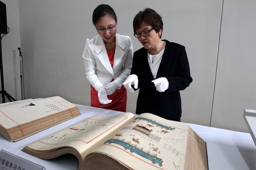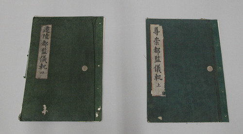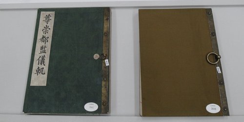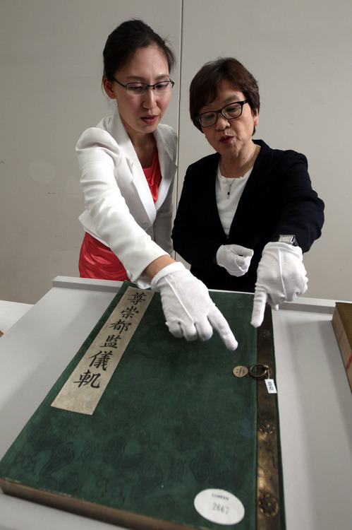 프랑스에서 귀환이 완료된 이후 처음으로 실물이 공개되는 외규장각 의궤. 장렬왕후존숭도감의궤(왼쪽)와 서궐영건도감의궤.