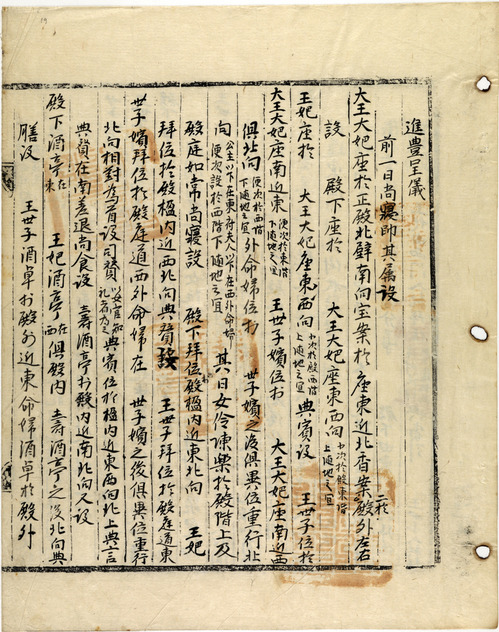 프랑스에서 귀환이 완료된 이후 처음으로 실물이 공개되는 외규장각 의궤류 중 풍정도감의궤(豊呈都監儀軌. 1630년)의 본문 한 페이지.