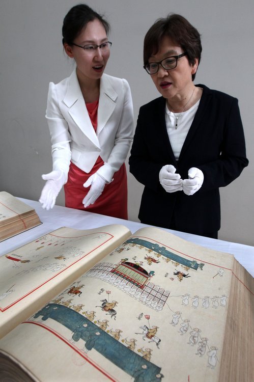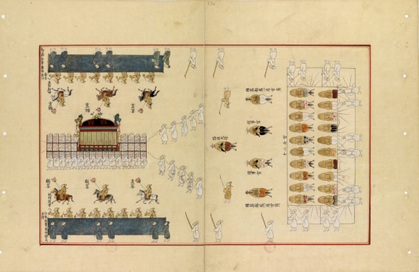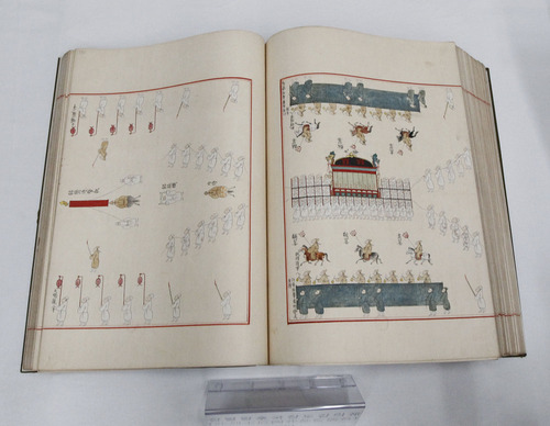 임금만 봤다는 조선왕실의 최고급 기록집은 누런빛의 서양비단 표지에 덮여 있었다. 정갈한 옛 글씨와 섬세하게 채색한 행렬도 등의 그림들은 생생하고 선명했다.