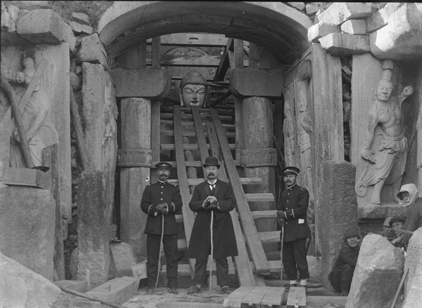 성균관대박물관이 1913년 석굴암 해체 수리 당시 무렵 촬영한 유리원판 각종 사진을 공개했다. 이는 석굴암 해체된 직후 모습이다. /성균관대박물관 제공 2007/09/