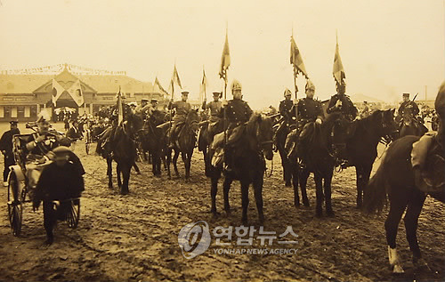 1909년 이토 히로부미가 순종을 모시고 서북순행을 하러 출발하기 전의 모습.
