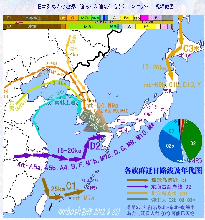 일본인의 기원과 관련해서는 조몬인이 스스로 환경에 적응했다는 변형설, 야요이인이 조몬인을 정복하고 정착했다는 인종치환설, 일본 열도의 원주민과 한반도 도래인의 혼혈이라는 혼혈설 등 3가지 학설이 있다. 혼혈설은 하니하라 가즈로우(埴原和郎) 전 도쿄대 명예교수가 1990년 주장한 것이다. 종합연구대학원대학의 사이토 나루야(齊藤成也) 교수는 "DNA를 분석한 연구 결과가 혼혈설의 시나리오와 일치했다"며 "1인당 최대 약 90만개소의 DNA 변이를 해석했기 때문에 결과의 신뢰성도 높다"고 설명했다. 도쿄 2012.11.01