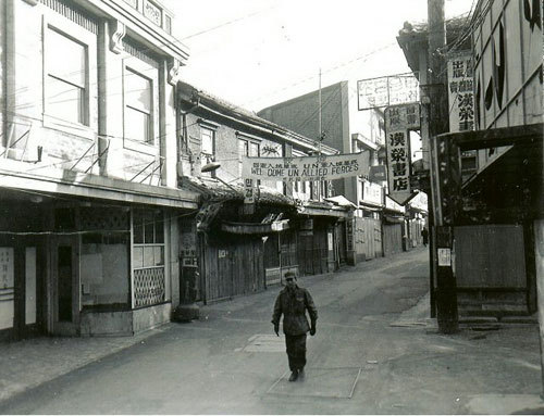 중공군의 개입으로 피난을 떠난 서울의 텅 빈 상가를 한국군 1명이 걸어가는 모습. 2009.06.23