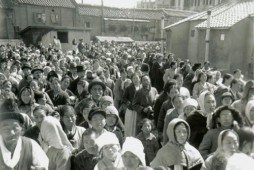 주민들이 배급식량을 타기 위해 줄을 서 있는 모습 1951.3.19. 서울.