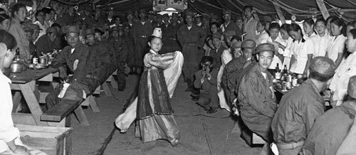 1953년 9월 경기 파주시 문산에서 열린 위문행사. 송환된 국군포로를 위해 이화여자중학교 학생들이 공연했다. /청암사진연구소 2010-05-06