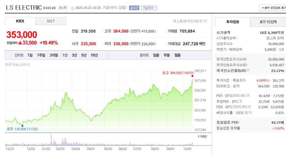 친구 관심 종목에 1년 넘게 있었던 종목으로 내년까지 장투를 권한 종목입니다. 미국 인공지능 데이터 센터 짓는데 반도체만 필요한 것이 아니라 전기설비도 필요한데 아마존이나 여러 빅테크가 위 회사 방문하여 협약을 한 바 있습니다. 올해 보다 내년 실적이 더 나질 것으로 증권사 목표가 41만원이 나왔습니다.