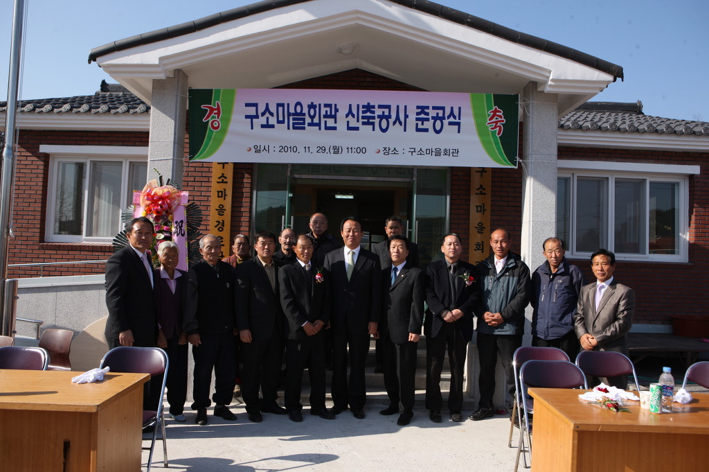 이날 행사는 마을회관 신축 경과보고 및 내빈축사, 테이프 절단 등으로 진행되었으며 구소마을회는 회관 건립에 아낌없는 도움을 준 김채용 군수, 김진옥 전 도의원, 김상규 전 군의원에게 감사패를 전달했다.
