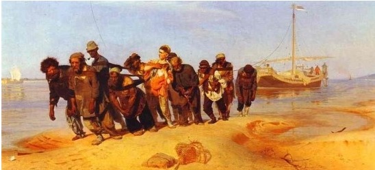 러시아 大화가 일리야 레핀의 < 볼가 강의 배 끄는 사람들 >