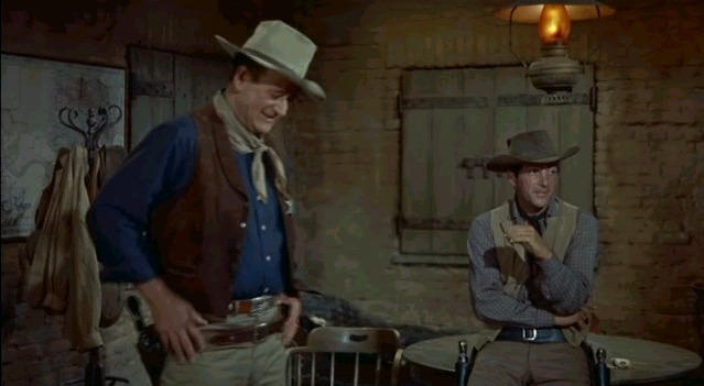 혹스 감독이 직접 제작 연출한 <리오 브라보>는 냉소적이고 심각한 프레드 진네만의 수정주의 웨스턴 <하이 눈>에 불만을 표시하면서 좀 더 대범하고 남성적인 웨스턴을 창조했죠.