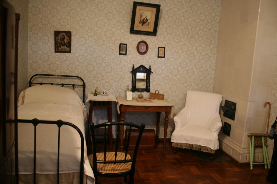 서재 옆은 침실입니다. 이 방에 <벚꽃동산>에서 가예프가 "귀중하고도 존경할 만한 책장이여"하고 외치게 되는 책장의 실물이 놓여 있습니다.
