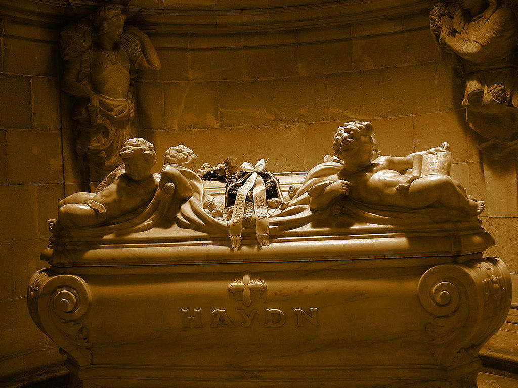 하이든의 유해는 처음에 비엔나의 훈트슈트르머의 묘지에 묻혔으나 1820년 에스터하지 가(家)의 희망으로 그가 전성기를 보낸 아이젠슈타트로 이장되었습니다. 아이젠슈타트의 무덤은 베르크 교회 안입니다. 대작곡가의 명성에 어울리게 널따란 별실의 영묘(靈廟)에 모셔져 있습니다. 대리석 석관의 네 귀퉁이에는 하이든의 <사계>에 따라 4인의 천사가 지키고 있습니다.