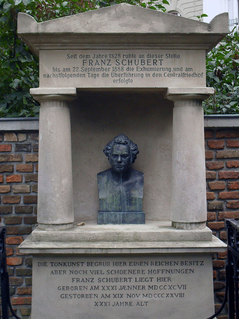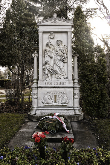 슈베르트의 무덤은 처음에 지금은 슈베르트의 공원이 된 베링 묘지에 베토벤과 나란히 있었으나 1888년 두 악성이 함께 중앙 묘지의 특별 명예 구역으로 이장되었고 서로 이웃하고 있습니다.