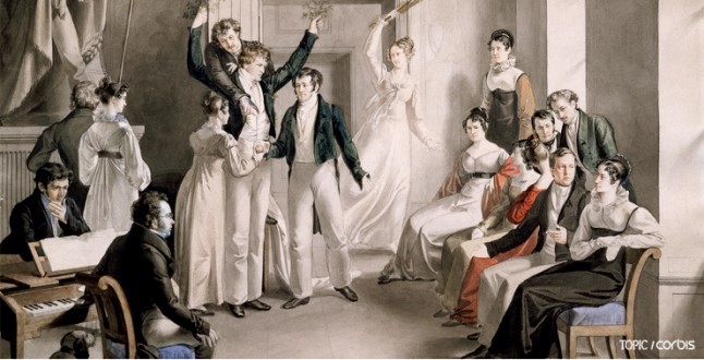 * 슈베르트 친구들의 예술인 모임 <슈베르티아데>, 피아노 앞에 앉아있는 슈베르트