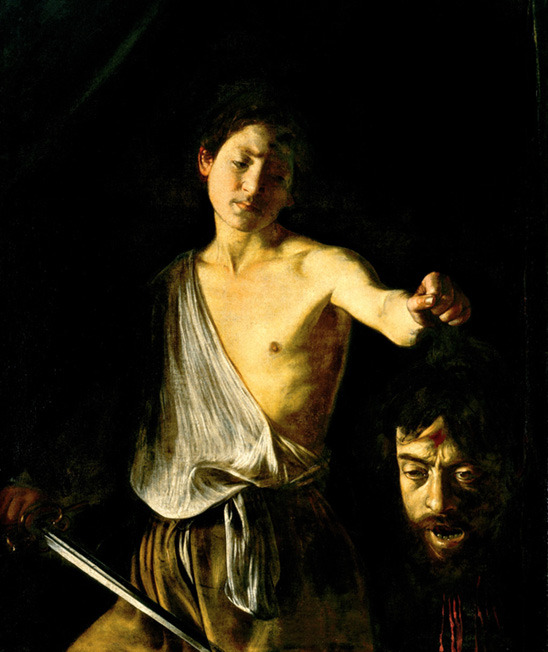 골리앗의 잘려진 목으로 표현된 카라바조의 얼굴은 자신의 죄를 뒤늦게 회개하는 모습이 처절할 정도로 잘 드러나 있고, 이를 바라보는 다윗의 얼굴에는 승자의 기쁨보다는 죽음에 대한 연민의 표정이 가득합니다.