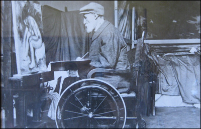 * 말년에 휠체어에 앉아 작업하고 있는 르누아르