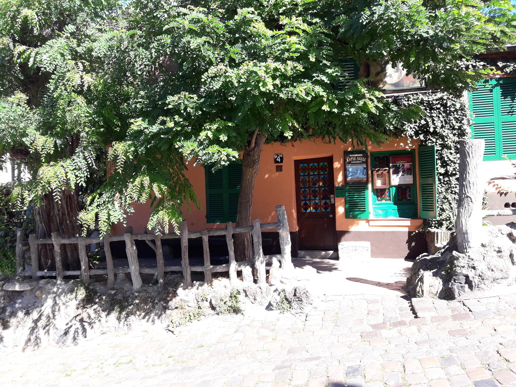 포도밭을 머리에 이고 있는 이 술집은 당시 피카소,르누와르,모딜리아니,로트레크,위트릴로 등의 화가들과 드뷔시,에릭 사티 등의 음악가들이 모여 술을 마시며 담소를 나누었다는 유명한 명소입니다. 보기에는 시골의 아담한 농가가 연상되는 소박한 모습을 하고 있습니다. 오 라핑 아질(Au Laping Agile>은 날쌘 토끼라는 뜻입니다.