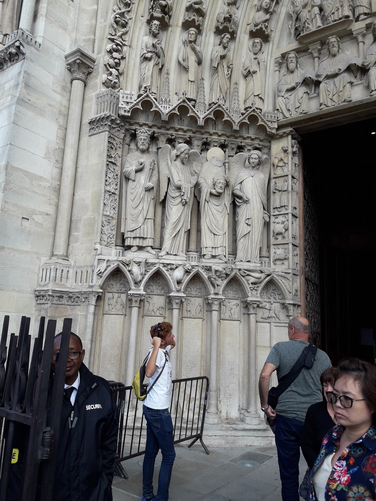 노트르담 대성당의 정면에는 3개의 커다란 출입문이 있습니다. 그리고 출입문 위에는 섬세하고 정교하게 새겨진 부조(浮彫)들이 있습니다. 주로 성서에 나타나 있는 성인들의 모습이 조각되어 있는데, 이는 실제로 성서를 읽을 줄 몰랐던 당시의 일반 대중들을 위해서 그림을 통해서 전달하고자 했던 겁니다.