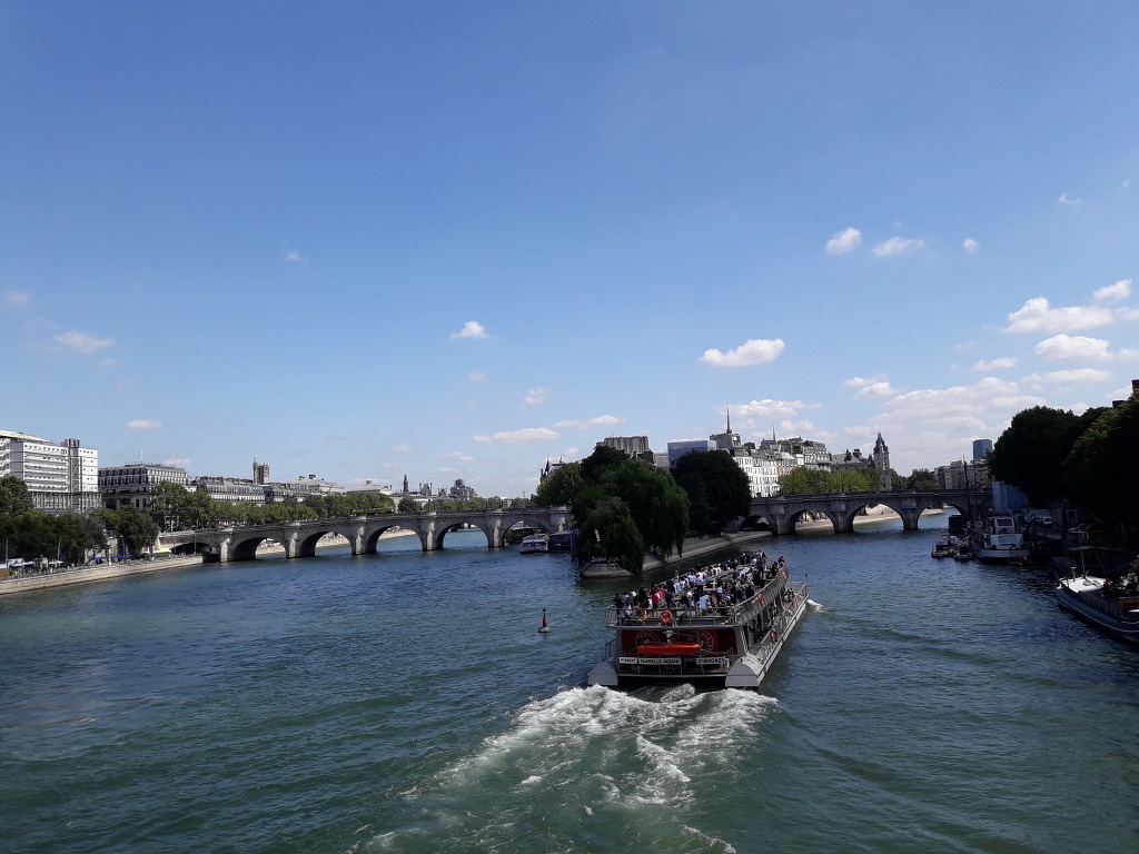 세느 강은 파리 남동쪽에서 시내로 흘러 들어와 생 루이 섬과 시테 섬을 감싸 안으면서 S자형으로 크게 굽이쳐 흐르며 대서양 방향으로 빠져 나갑니다. 유럽의 대부분의 강들과 마찬가지로 세느 강 역시 완만한 흐름과 안정된 유수량으로 옛날부터 수운이 발달했습니다.