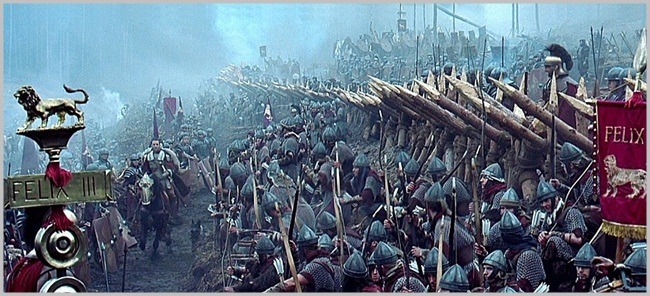 책임감이 강한 마르쿠스 아우렐리우스는 황제로서의 의무를 다하기 위해 직접 전장에 나가 군대를 지휘했습니다. 영화 <글래디에이터>는 바로 이 전쟁터에서 시작합니다. 로마 군대를 이끌고 게르만 족과 치열한 전투를 벌이고 있는 로마 장군 막시무스는 마르쿠스 아우렐리우스 황제의 총애를 받고 있습니다.