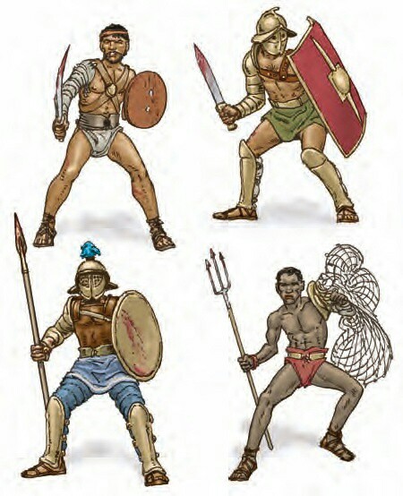 검투사들이 이렇게 무장의 형태로 물고기 검투사, 그물 검투사, 기사 검투사 등으로 분류되는데, 지역출신별로 갈리아 검투사, 다키아 검투사, 게르만 검투사 등으로도 분류됩니다. 하지만, 인기와 받는 보수 그리고 경력으로 1급에서 4급으로 분류하여 경기장에 내보냅니다.
