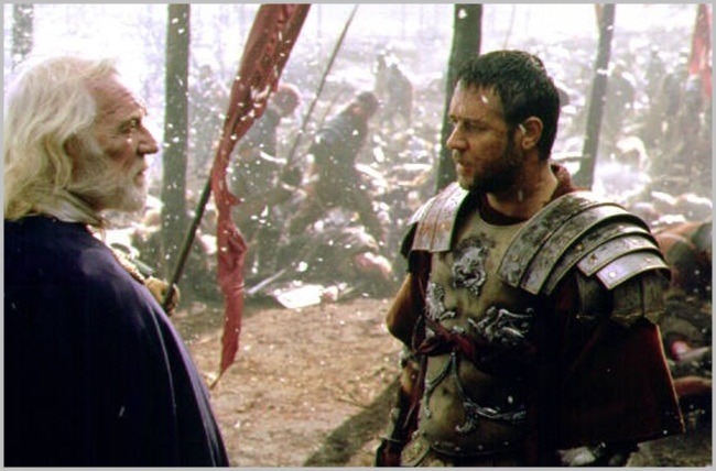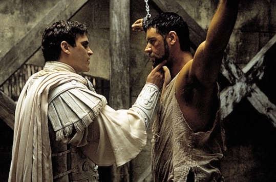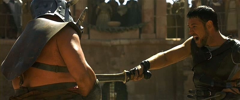 콤모두스는 자기가 직접 막시무스와 결투를 벌여 그를 죽이겠다는 계획을 세웁니다. 경기에 앞서 막시무스를 찾아간 콤모두스는 칼로 막시무스를 찌릅니다. 그런 다음 상처를 가리고 갑옷을 입혀 경기장에 내보내라고 명령합니다. 애초부터 공정한 시합이 아닌 셈이었습니다.