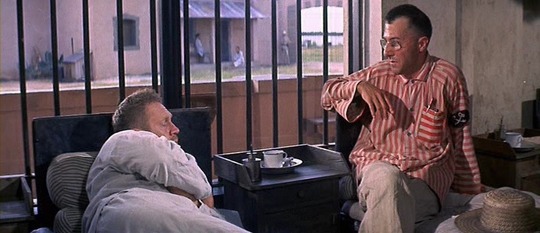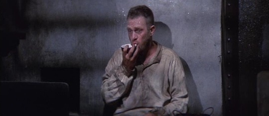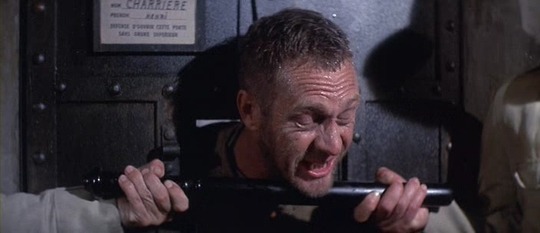특히 1차 탈출시도에서 잡혀서 2년간 독방생활을 하는 부분이 굉장히 리얼하게 묘사되고 있습니다. 드가가 보낸 코코낫을 매일 먹다가 발각되지만 끝까지 드가의 이름을 대지 않은 의리를 발휘, 식사량이 절반으로 줄어서 굶어죽기 직전까지 가지만 바퀴벌레까지 잡아먹으며 악착같이 생존에 대한 불굴의 의지를 보여주는 주인공 빠삐용을 모습을 스티브 맥퀸이 혼신의 연기를 하여 잘 살려내고 있습니다.