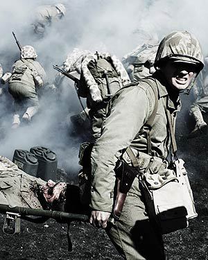 국민들의 감정적 동요를 더 고양시켜 전쟁을 지속할 명분을 만들기 위해 정부는 사진의 주인공들 중 전사자를 제외한 세명의 본국 귀환 명령을 내립니다. 위생병 존 닥 브래들리, 아메리카 원주민인 아이라 헤이스, 그리고 르네 개그넌. 이들은 전 국민으로부터 영웅으로 대접 받습니다.