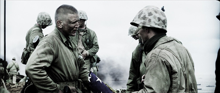 이 세명의 병사들 중에 특히 아메리카 인디언인 해병대원 아이라 헤이스는 이 영화가 말하고자 하는 바를 압축한 인물이기도 하죠. 비록 그는 미국 사회의 인종적 타자이지만 백인들과 함께 조국인 미국을 위해 싸우고자 합니다. 그러나 그는 다른 두 백인 병사들과 달리 거짓으로 영웅이 된 사실을 견딜 수 없어 합니다. 결국 그는 전장으로 다시 소환됩니다.