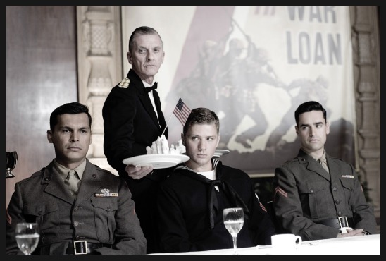 2차 세계대전이 한창 진행되던 당시, 이들은 지금 전쟁기금 마련을 위해 순회공연을 하면서 전쟁터의 장면을 흉내내고 있는 중인 것입니다. 이때 관중들에게 화답하던 브래들리는 문득 위생병을 부르는 화급한 소리를 듣고 고개를 듭니다.