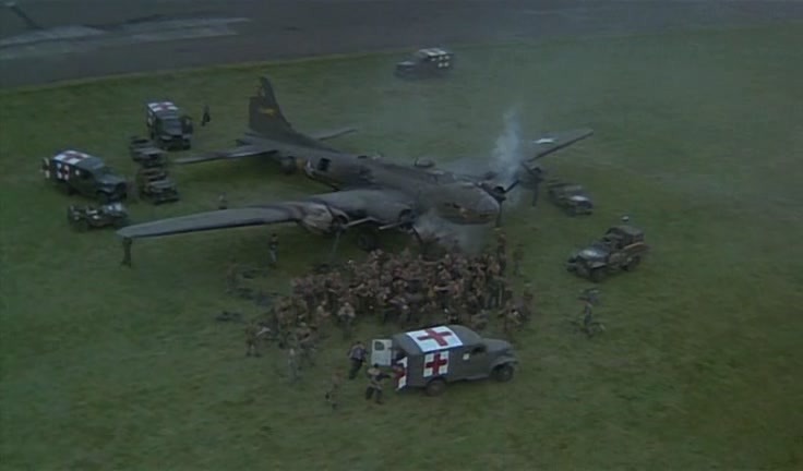 짙은 구름에 가려서 지상의 위치를 분간할 수 없자 기장 데니스(매튜 모딘)는 한 차례의 선회를 결정합니다. 폭격기는 전투기와 달리 선회하려면 많은 선회반경을 필요로 하기 때문에 좀더 오랫동안 공격에 노출될 수밖에 없다는 어려움이 있습니다.