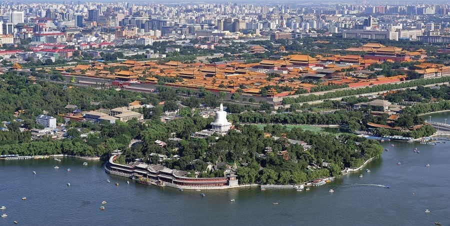 * 오늘날의 자금성, 아래 호수가 중난하이인데 이곳에 시진핑을 비롯한 공산당 고위층이