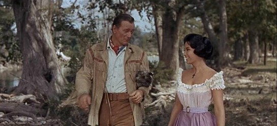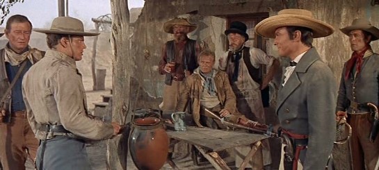 유명한 알라모 전투가 벌어지는 장면은 2시간이 지난 후에나 나타나고, 존 웨인도 영화시작 20분이나 지나서야 등장합니다. 전투 이전까지는 트래비스 대령, 짐 보위, 데이비드 크로켓 등 알라모 영웅들의 인물위주로 이야기가 전개됩니다.