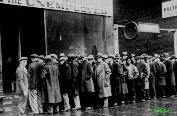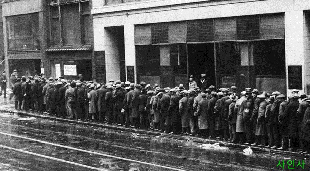 하지만 그 해가 다 가도록 실제로 뛰어내린 사람은 단 두 명이었다고 합니다. 이 '검은 목요일(Black Thursday)' 이 후, 미국의 수많은 은행과 공장들이 줄줄이 문을 닫고, 사람들은 일자리를 잃게 되었으며, 미국과 전 세계 경제는 끝없는 침체의 늪으로 빠져들게 됩니다.