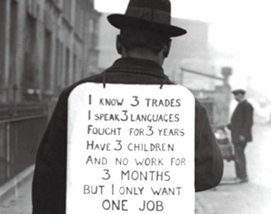1932년에 미국의 총생산은 1929년에 비해 절반으로 감소하였고, 실업률은 25%에 이르렀습니다. 문을 닫은 기업의 수가 9만을 넘었고 1500만 명이 일자리를 잃었습니다. 그나마 실직을 당하지 않은 노동자들의 임금도 평균 50%가 감소하였습니다.