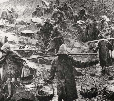 그런데 제철소 건설에는 엄청난 돈과 고도의 기술력이 필요했고 중국은 두가지가 다 부족했습니다. 그러자 과학과 공학에 무지했던 마오는 기상천외한 철강 생산 증대 계획을 세웠습니다. “거대 제철소를 세울 수 없다면 마을마다 소규모의 재래식 용광로(이른바 토법고로)를 만들어라. 그리고 그 용광로로 철을 생산하라.”