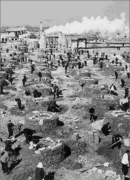 그런데 더 큰 문제는 이 용광로의 불을 지피기 위해 나무를 잔뜩 베 숲이 줄어들어 산들은 죄다 민둥산이 되어버렸습니다. 때문에 홍수와 산사태가 잦아져 농사에 극심한 타격을 주게 됩니다.