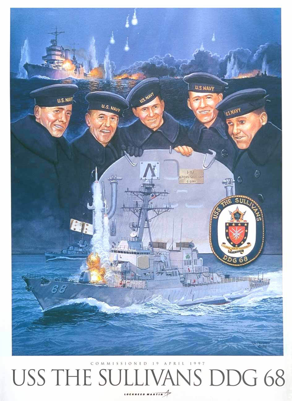 설리번 형제의 이름을 땄던 첫 번째 구축함은 2차대전과 한국전을 치르고 1965년 퇴역했으며, 미 해군은 1995년 8월 알레이버크급 이지스 구축함에 두 번째 ‘설리번 형제함, USS The Sullivans, DDG-68’ 이라는 이름을 붙여 진수 시켰습니다. 이 진수식에는 설리번 5형제 중 유일한 기혼자였던 막내 알버트 설리번의 손녀가 참석했습니다.