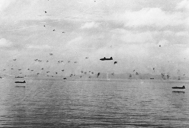 여기에 더해 지상군 증원 병력을 태운 일본 전투함들-주로 구축함들-도 잠수함이나 항공기, 미 해군 함정들로부터 꾸준히 공격을 받았습니다. 먼저 일본, 그리고 미국이 항모를 한 척씩 잃었습니다. 그리고 미국은 또 한 척의 항모를 잃었으며 일본 역시 두 척의 항모에 큰 손상을 입었습니다.