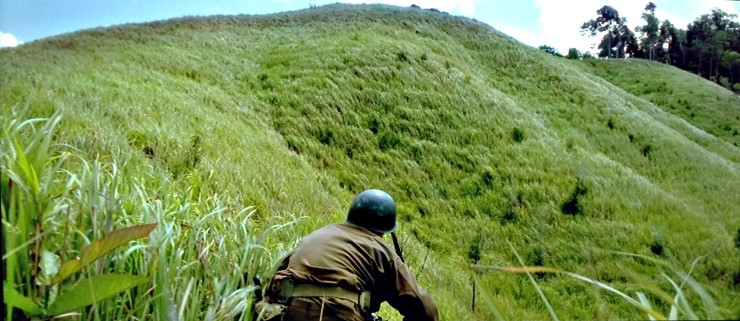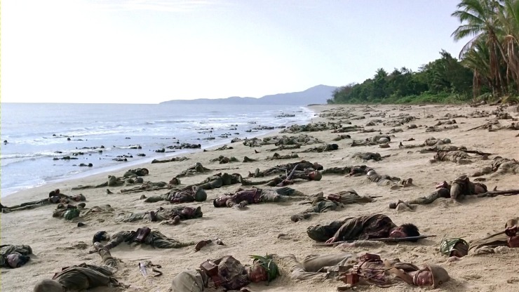 사실 두 영화는 비교 자체가 어려운 게, <라이언 일병 구하기>가 한 편의 소설이라면 <씬 레드 라인>은 한편의 서정시에 가깝기 때문입니다. 각자의 취향에 따라 호불호가 갈릴 수밖에 없다.과달카날 전투를 다루고 있으나 과달카날 섬에서 찍은 장면은 하나도 없습니다.
