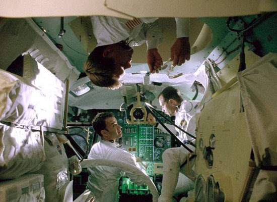 특히 러블을 비롯한 우주 비행사들의 심리상태가 매우 섬세합니다. 예를 들어서 영화 초반 닐 암스트롱의 달 착륙 장면을 바라보다가 밖에 나와서 아폴로 8호에서 달에 갔지만 착륙하지 못했던 것을 천추의 한으로 여기고 달을 바라보는 장면, 달에서 원래 착륙할 예정이었던 장소를 바라보며 달에 착륙하는 상상을 하는 장면, 그런 와중에도 집에 가야 한다는 정신력을 되새기는 장면이 호평을 받았습니다.