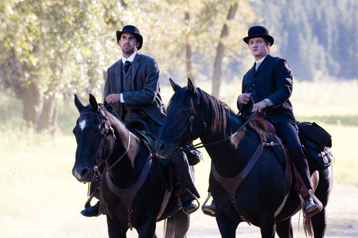 * 제시를 죽일까 말까 고뇌하는 포드 형제, 앞이 형 찰리