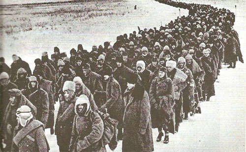 그로부터 48시간 이내에 굶주리고 지친 91,000명의 독일 장병들이 속속 투항했습니다. 그것이 25만을 헤아리고 있던 제6군의 생존자 전부였고 그나마 부상과 동상으로 죽어가고 있는 사람이 태반이었습니다.
