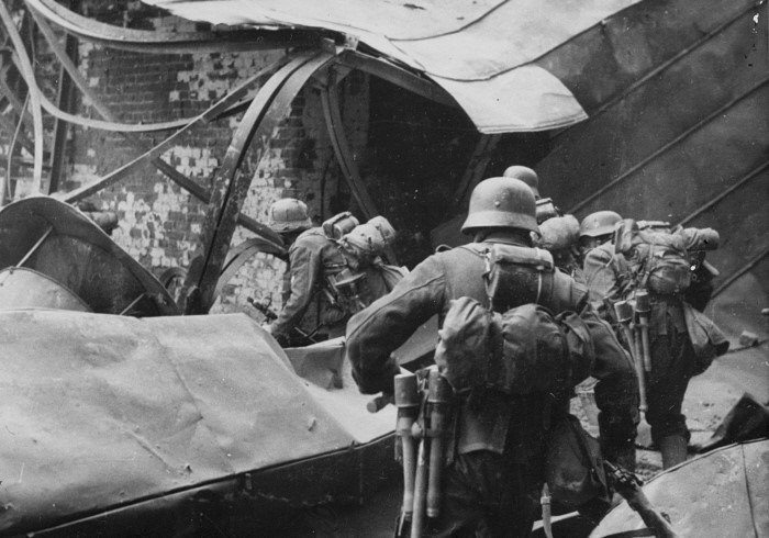 돌격대라 불리운 이 소부대들은 발자국 소리를 죽이기 위해 군화 위에 두터운 헝겊을 감싸고 기관단총과 수류탄, 그리고 폐허를 파헤치기도 하고 육탄전 무기로 사용할 수도 있는 소형 곡괭이로 무장하고 있었습니다.